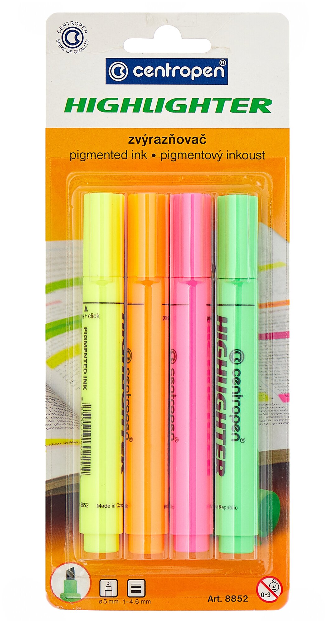Набор текстовыделителей Centropen 8852 04цв., 1-5мм, блистер с европодвесом ( Артикул 063891 ) информация: