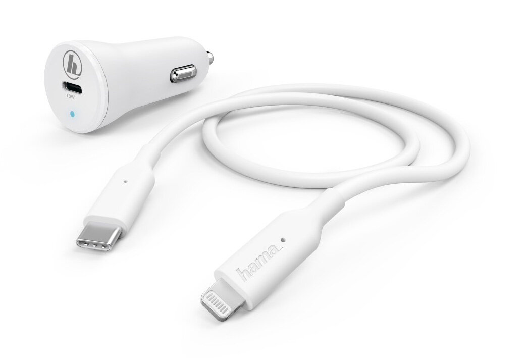 Зарядное устройство Hama автомобильное, H-183297 для Apple кабель Apple Lightning/Type-C белый