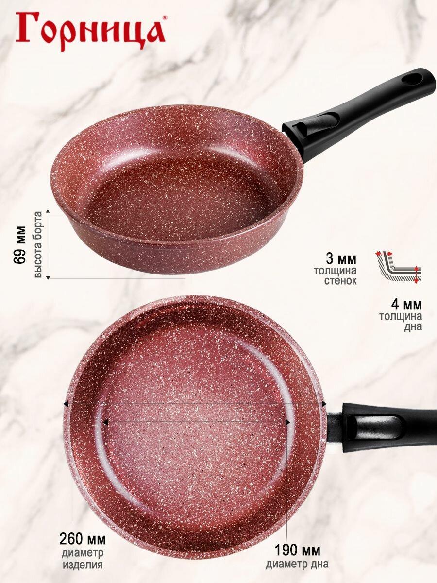 Сковорода антипригарная литая 26см со съемной ручкой и стеклянной крышкой Шоколад ТМ Горница информация: