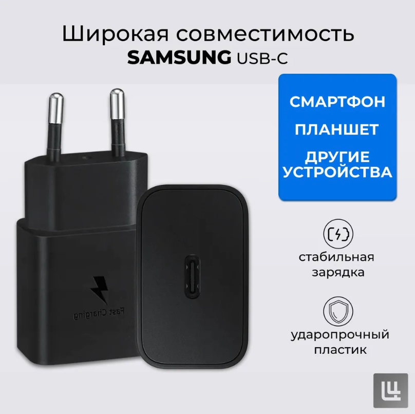 Сетевое зарядное устройство Samsung USB Type-C, адаптер для быстрой зарядки, 15 Вт (EP-T1510), черный информация: