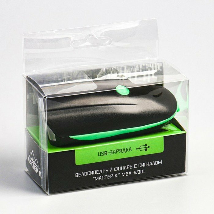 Фонарь велосипедный "Мастер К.", 3 режима, 2 Вт, 1200 мАч, с гудком, 10 х 5 х 5 см (комплект из 2 шт) 1 580 ₽