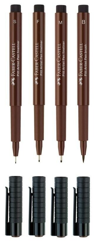 Набор капиллярных ручек Faber-Castell "Pitt Artist Pen" темная сепия, 4 шт., 0,3/0,5/0,7 мм/Brush
