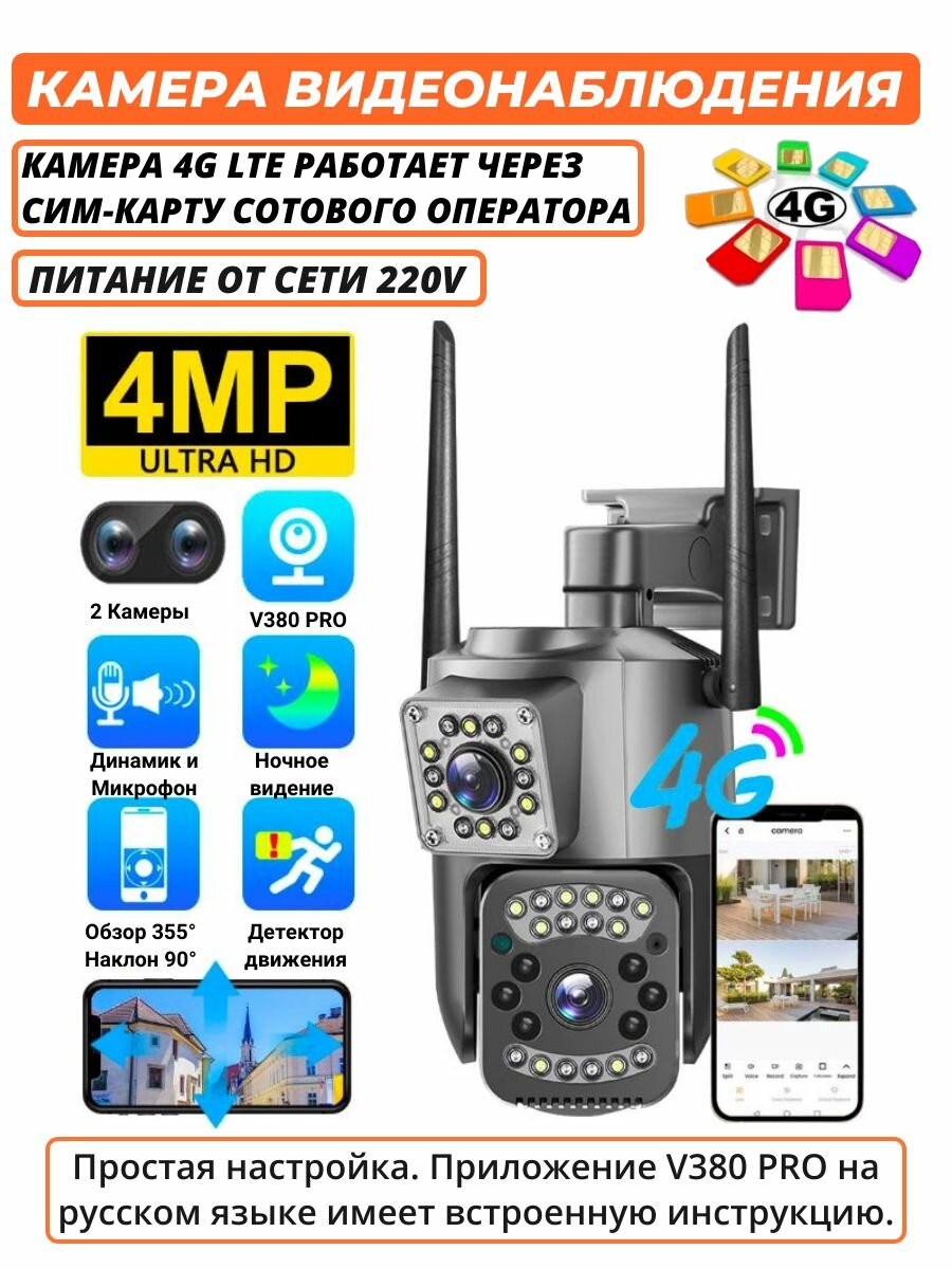 Уличная камера видеонаблюдения с двумя объективами 2 камеры IP V380 Pro, 4 Мп, 3G, 4G, LTE, от сим карты, автослежение, PTZ информация:
