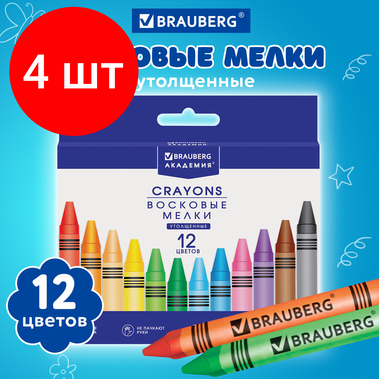 Восковые мелки трехгранные утолщенные BRAUBERG "академия", набор 12 цветов, 227287, - Комплект 4 шт.(компл.) информация: