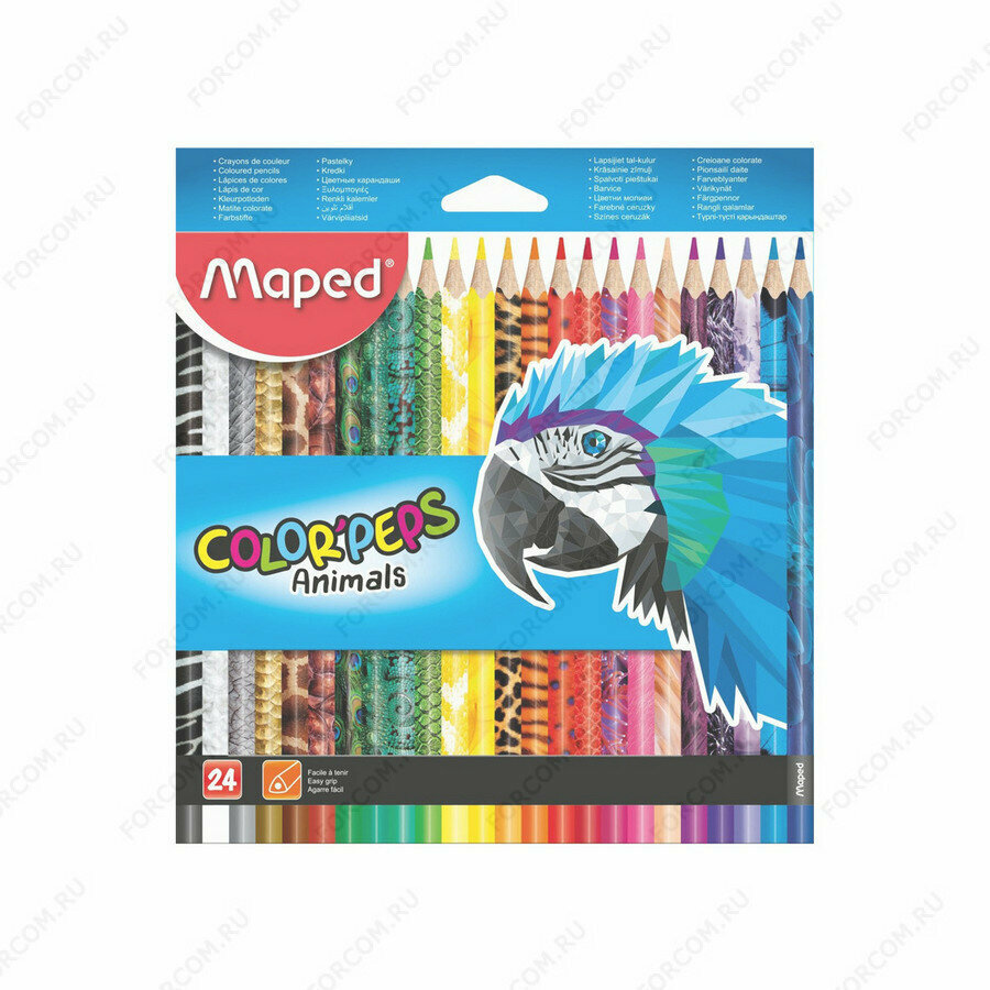 Набор цветных карандашей Maped Color'Peps Animals с декором, 24 цвета, трехгранные, деревянные (MAPED 832224)* информация: