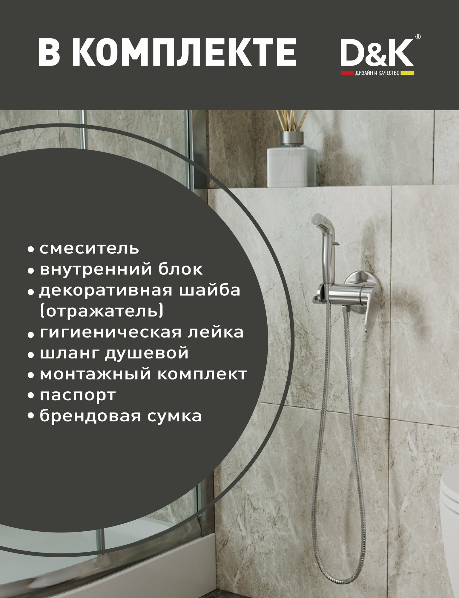 D&K Смеситель для душа DK Rhein.Marx DA1394581 с гигиеническим душем встраиваемый хром DA1394581