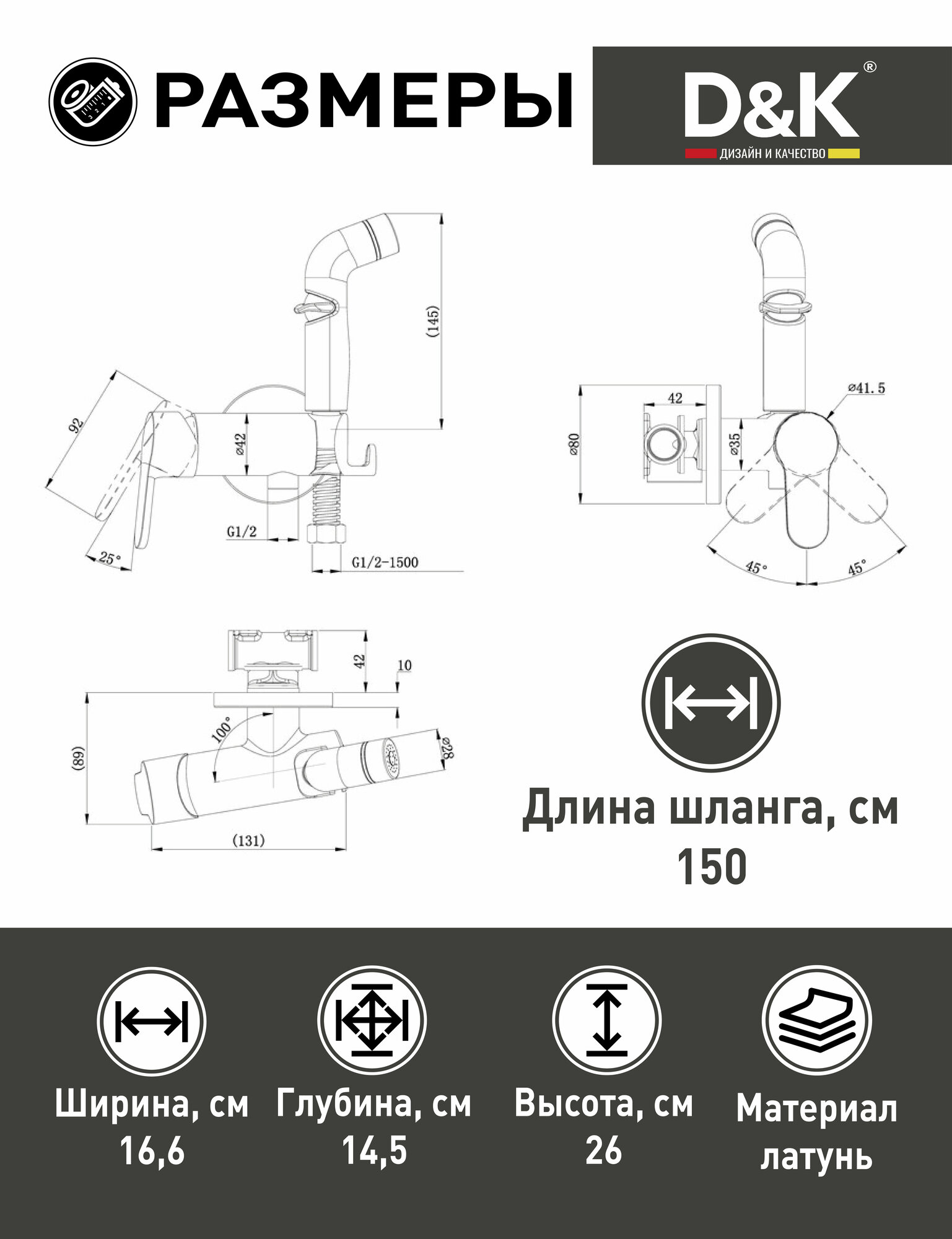 Гигиенический душ D&K DA1394581 RheinMarx Смеситель с гигиеническим душем, хром