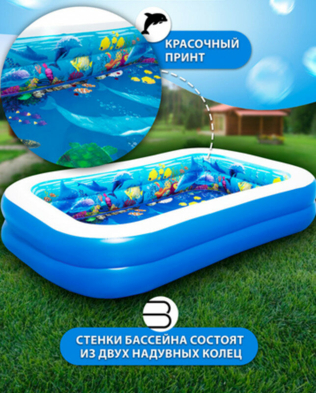 Детский надувной бассейн 262х157х46см "Подводный мир" 544л, от 3 лет