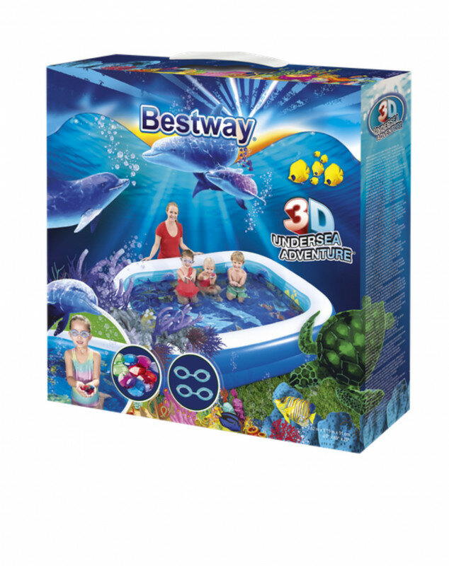 Бассейн надувной прямоугольный 262*175*51 см, 3D Undersea Adventure, Bestway (54177)
