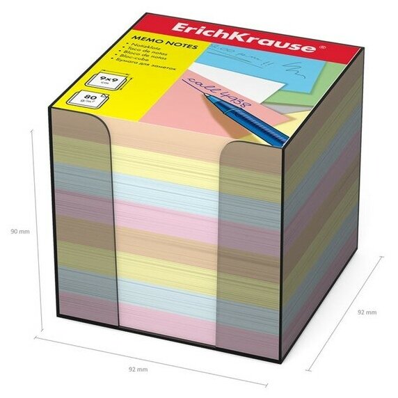 Блок бумаги для записей ErichKrause, 9 x 9 x 9 см, в пластиковом боксе, 80 г/м2, цветной