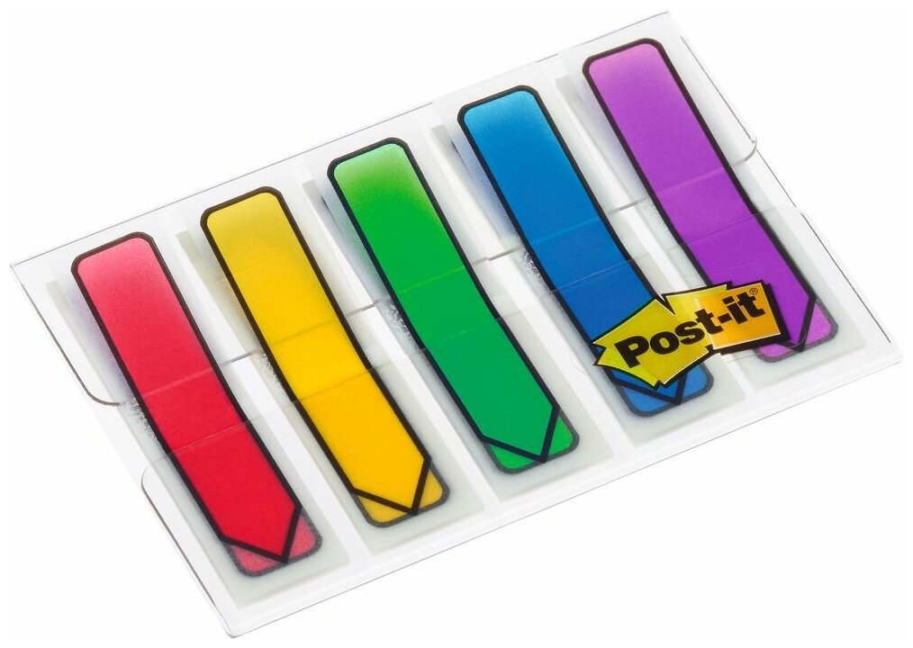 10 цен на Клейкие закладки пластиковые 3M Post-it "Стрелки", 5 цветов по 20л., 12мм, блистер (684-ARR1)