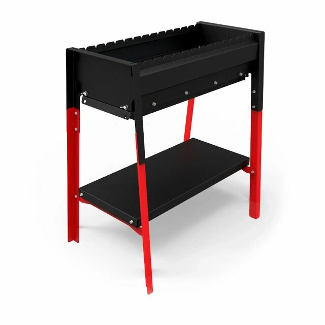 Мангал 800 мм. с полкой-решёткой и полкой под казан, сталь рифленая-усиленная 3 мм. разборный, с полкой под дрова