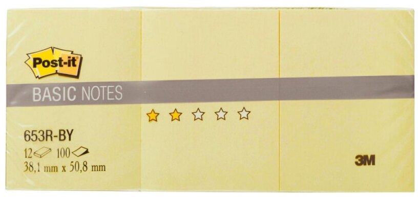 Стикеры (самоклеящийся блок) 3M Post-it Basic, 38x51мм, желтый пастель, 12 блоков по 100 листов (653R-BY) информация: