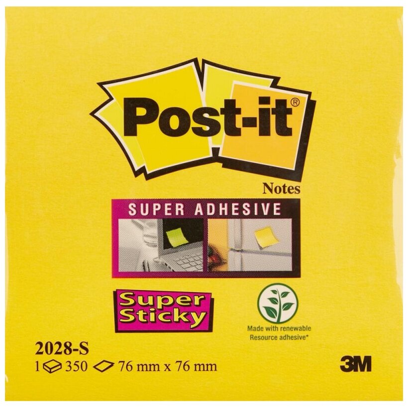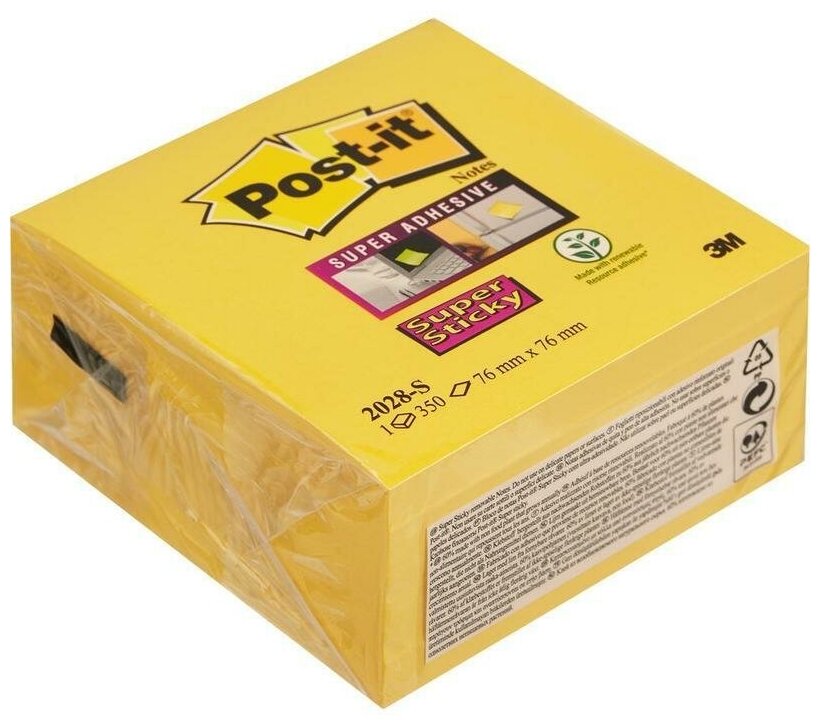 Блок самоклеящийся бумажный 3M Post-it Super Sticky 2028-S 7000029868 76x76мм 350лист. желтый неон 7 информация: