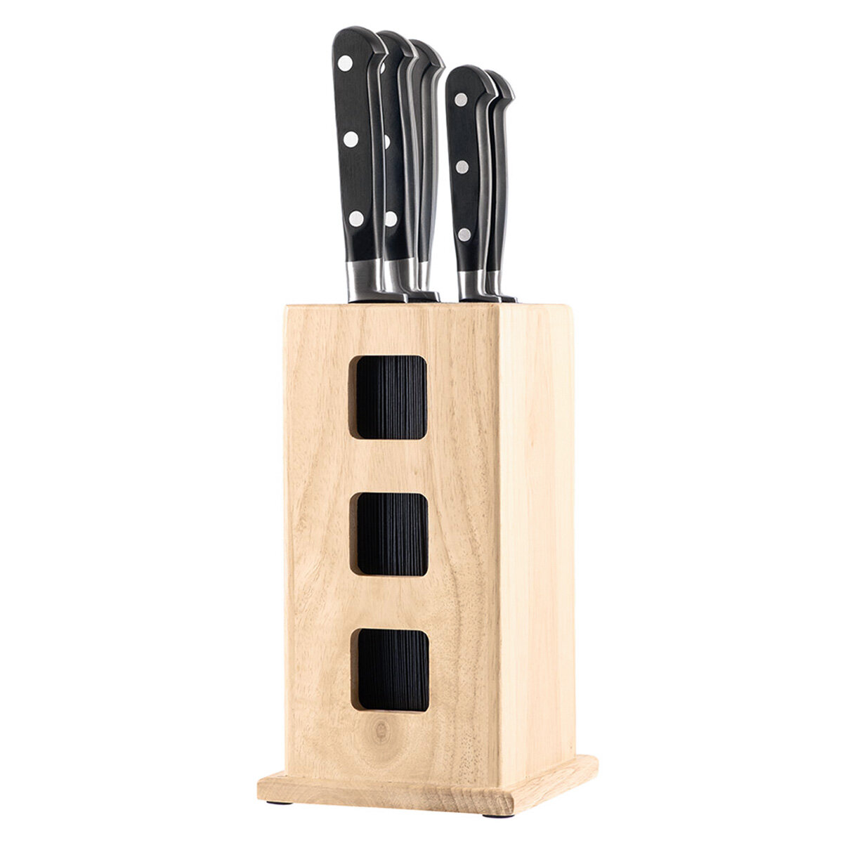 | Дополнительная информация | сталь 3cr13; тип подставки: закрытая; способ фиксации ножей: мягкий наполнитель |