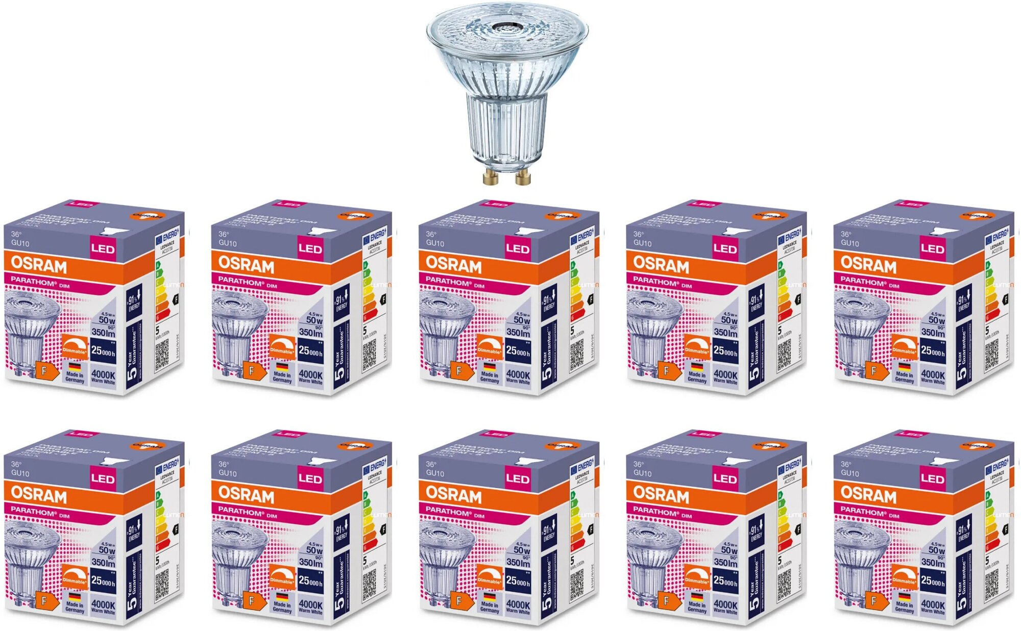 10 цен на Лампа LED Софит 4.5W 220-240V GU10 PAR16 350Лм 4000К Угол 36 град. D-51mm L-54mm Диммируемая Свет Нейтральный белый OSRAM, уп. 10шт