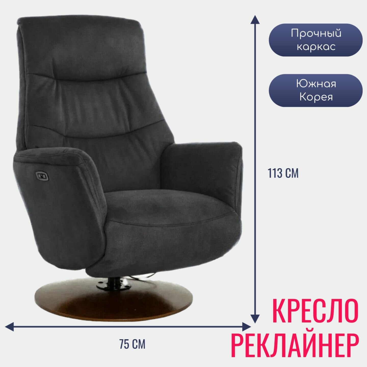 Кресло электрореклайнер RELAX Concord 4073WD (КМ003/029)_Т/серый 188 650 ₽