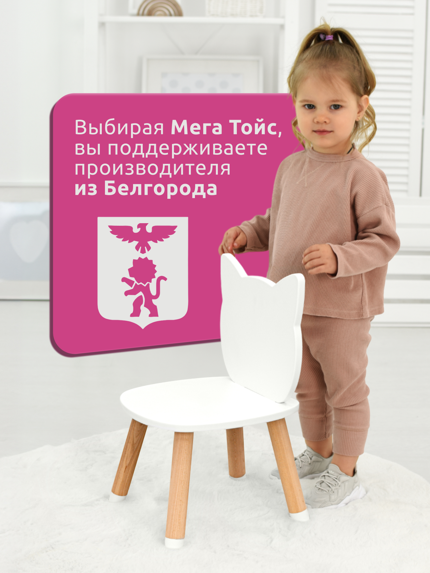 Детский стул деревянный для детей со спинкой Кошка Мега Тойс белый стульчик для ребенка / Мебель в комнату для малышей, для детского сада информация: