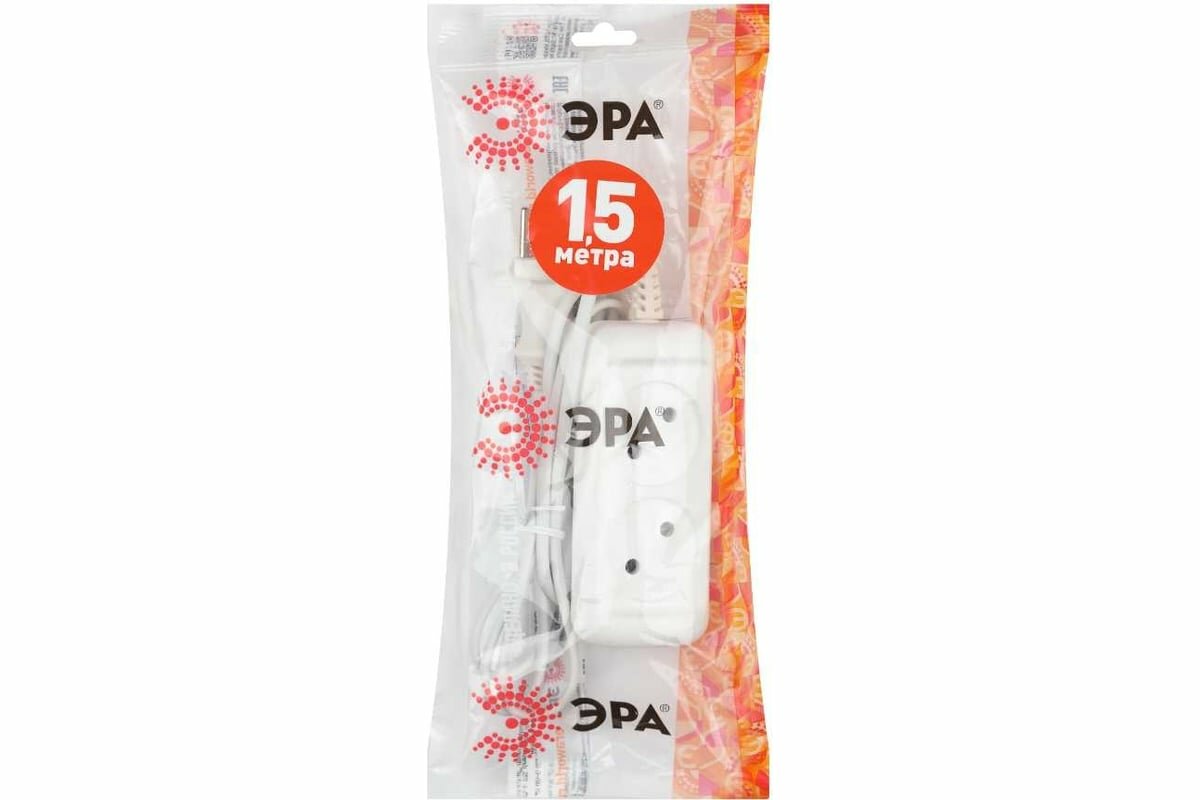 Отзывы на Удлинитель сетевой электрический без заземления ЭРА UX-2-1,5m 2 розетки, 1,5м, 6А