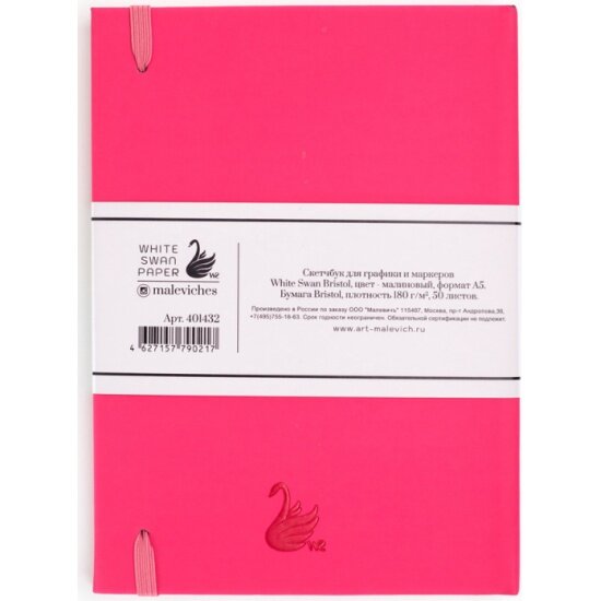 Малевичъ Скетчбук для графики и маркеров "White Swan Bristol", малиновый, 180 г/м, А5 см, 50л