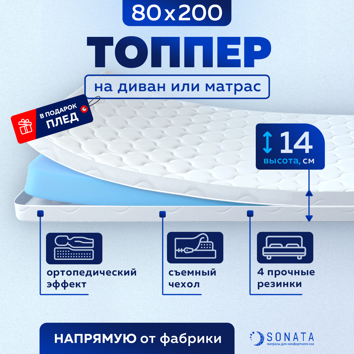 10 цен на Матрас 80х200 см SONATA, Беспружинный, высота 14 см, Съемный чехол, Плед в подарок