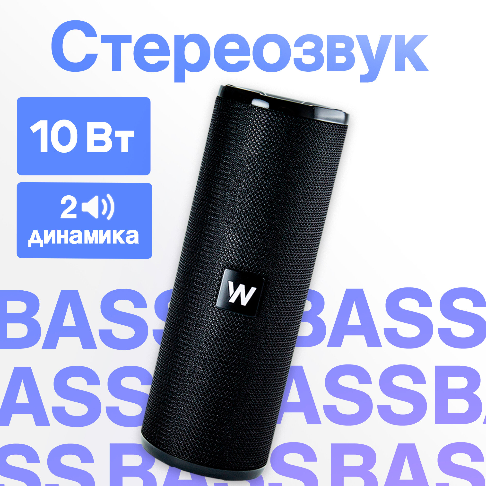Портативная колонка bluetooth 5.0, WALKER, WSP-110, 2 динамика по 5Вт, блютуз колонка беспроводная, колонка музыкальная как jbl акустика, черная 1 015 ₽