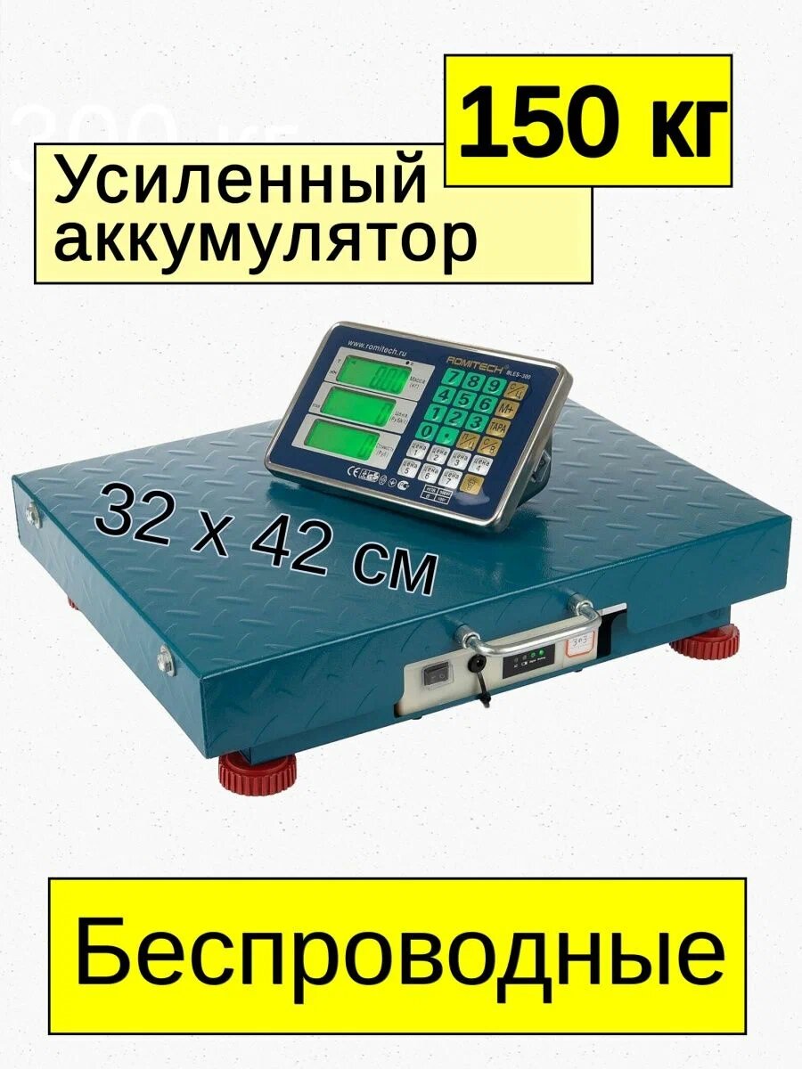 10 цен на Весы торговые электронные беспроводные BLES-150ECO до 150 кг, платформа 32х42 см, синий