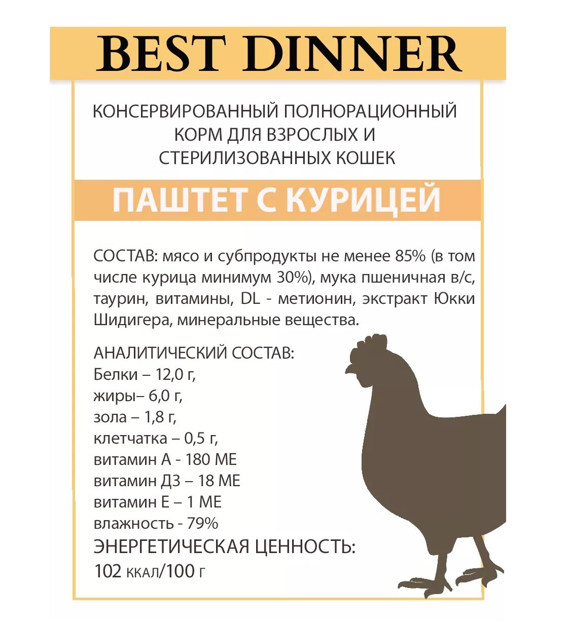 Влажный корм Best Dinner, нежный паштет для стерилизованных кошек с курицей 14шт х 100 г информация: