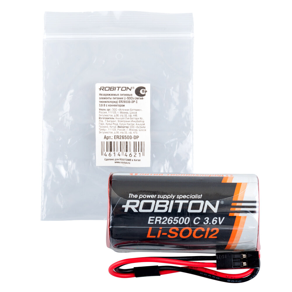 Батарейка ROBITON ER 26500-DP Lithium, 3.6 В, C (R14), 9000 мАч с коннектором