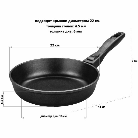 Отзывы на Сковорода Elan Gallery глубокая 22 см гармония вкуса "Черный Оникс" без крышки, 43*23*9 см (120300)