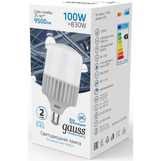 Светодиодная лампа Gauss Elementary "Т160" 100Вт 9500Лм Е40 6500К информация: