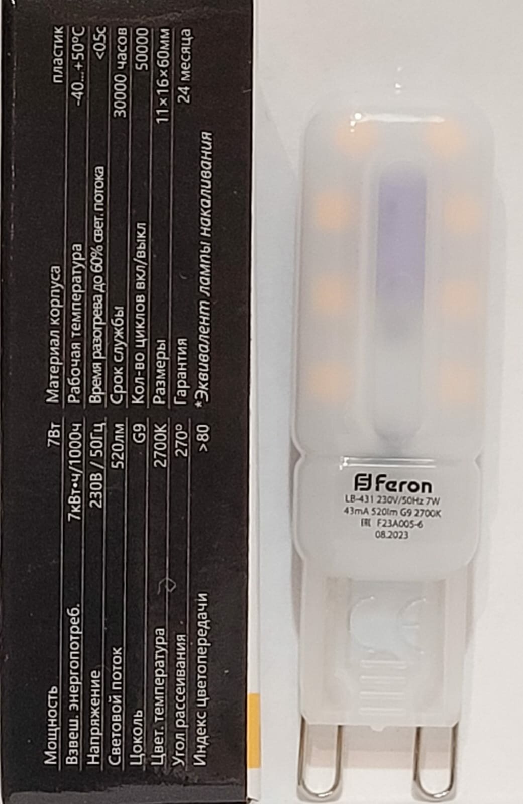 Лампа светодиодная Feron LB-431 25755, JCD9, 7 Вт, 2700 К информация: