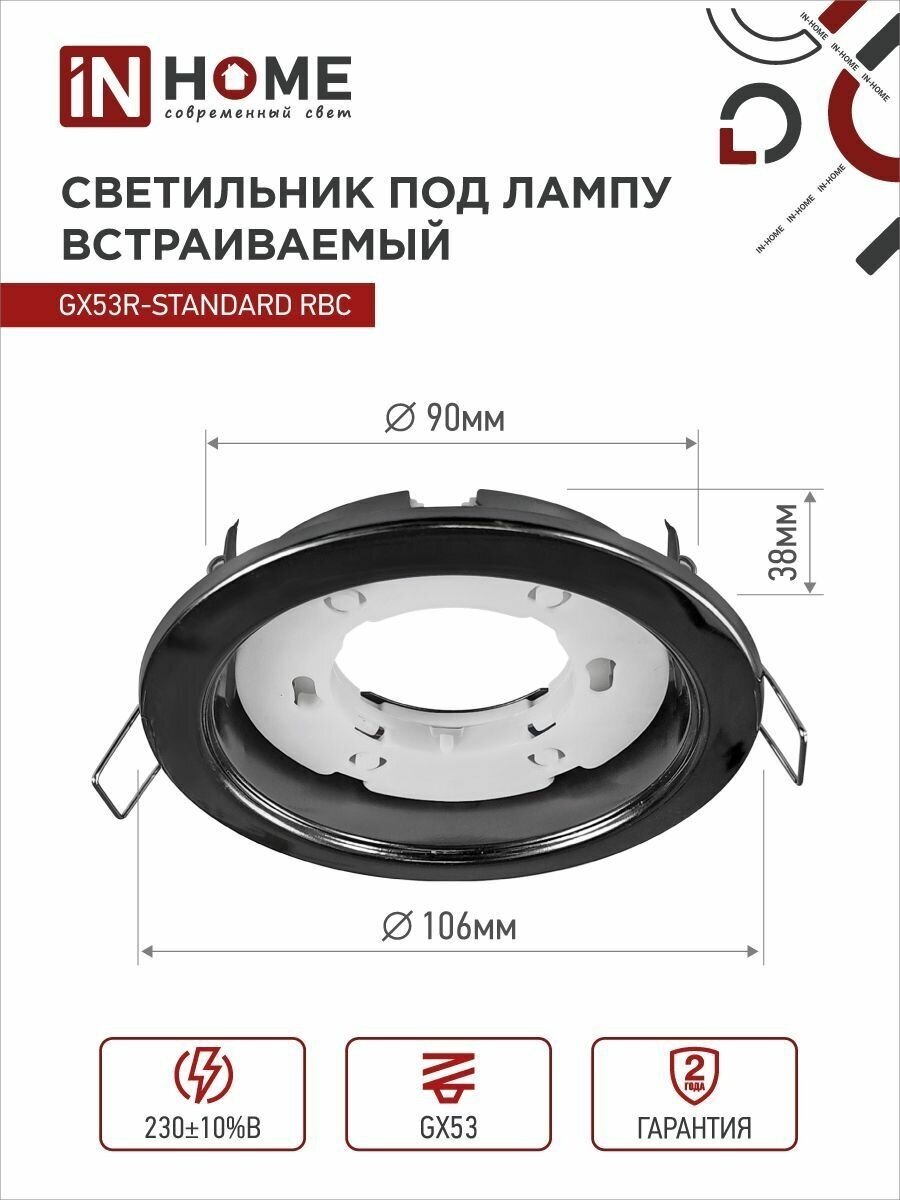 Светильник встраиваемый точечный GX53R-standard RBC-10PACK под GX53 черный хром (10 шт./упак.) IN HOME информация: