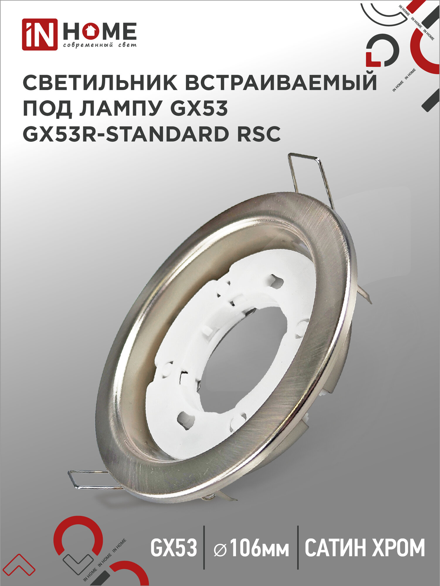 Светильник встраиваемый точечный GX53R-standard RSC-10PACK под GX53 сатин-хром (10 шт./упак.) IN HOME информация: