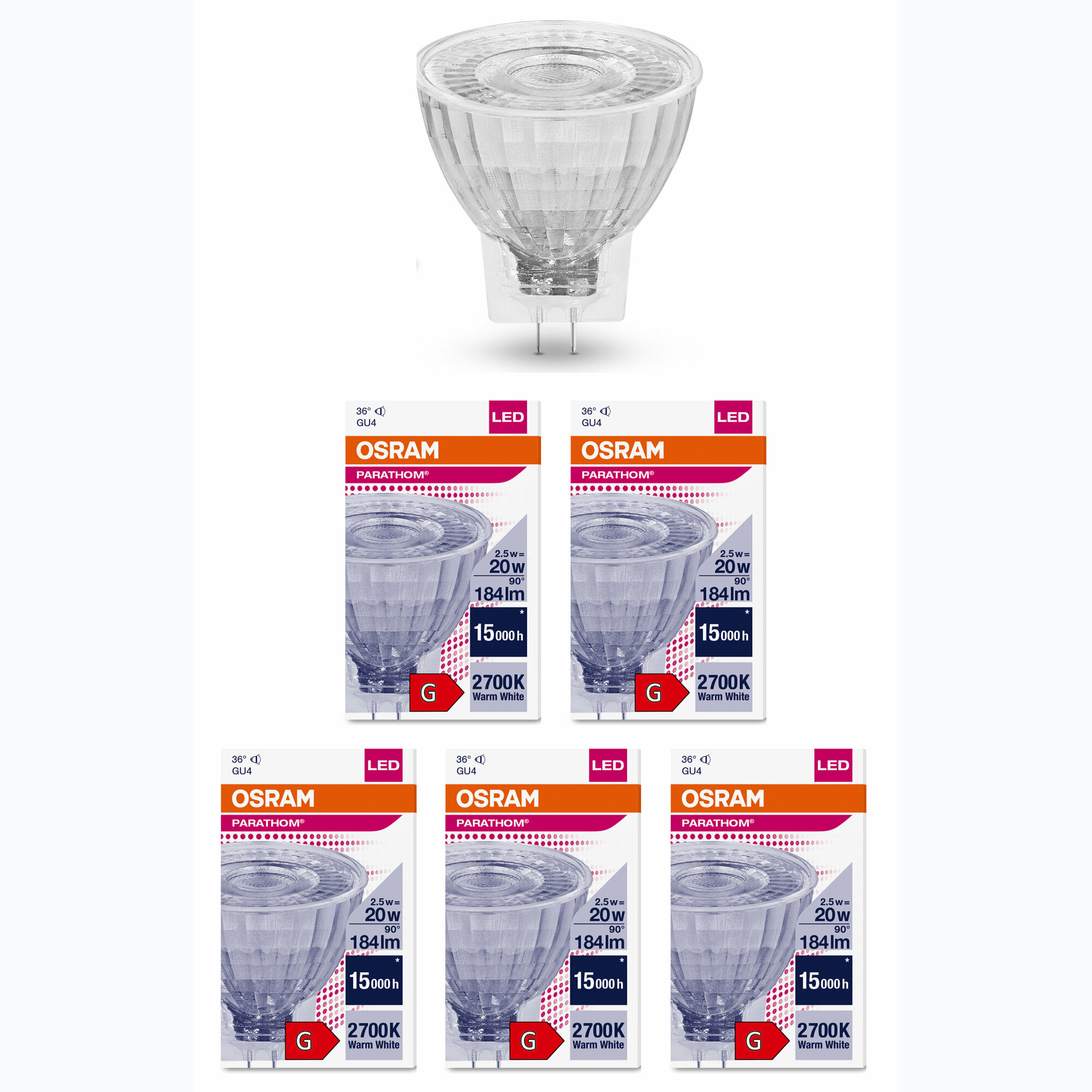 Лампа светодиодная OSRAM 2,5W=20W 12V Софит MR11 GU4 PARATHOM стекло, угол 36° 184Лм 2700К Теплый белый, уп. 5шт 2 403 ₽