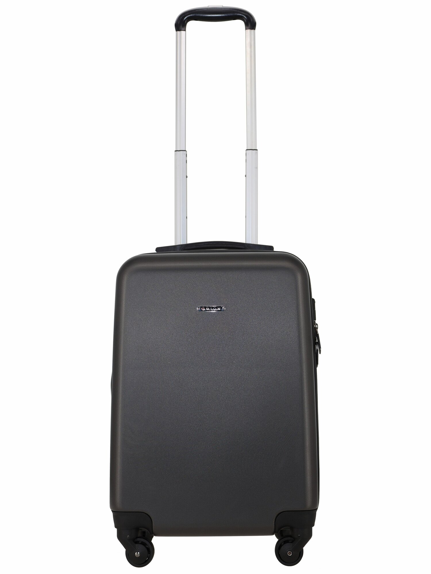 Чемодан Рион+ (RION+) R435, Пластик, 55 см, 38 литра, 4 колеса, S (до 55 см), ручная кладь, темно-серый