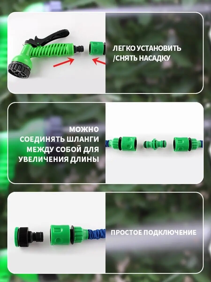 Шланг садовый растягивающийся для полива и мойки автомобиля