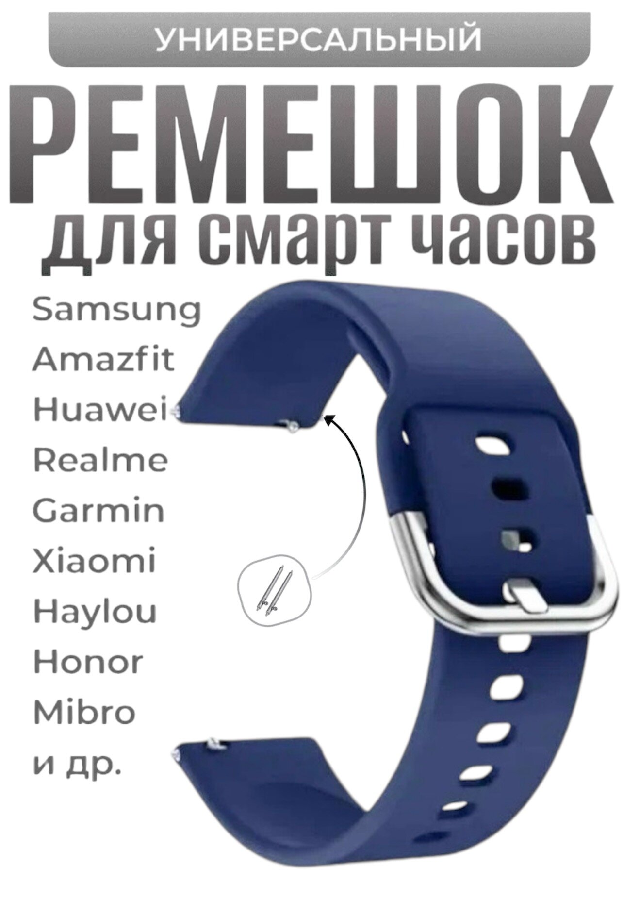 10 цен на Силиконовый ремешок для часов Samsung Galaxy watch/ Amazfit Pace/Stratos 1/2/2s/GTR 47 мм/Sport Watch, 22 мм, синий гладкий. Серебристая застежка