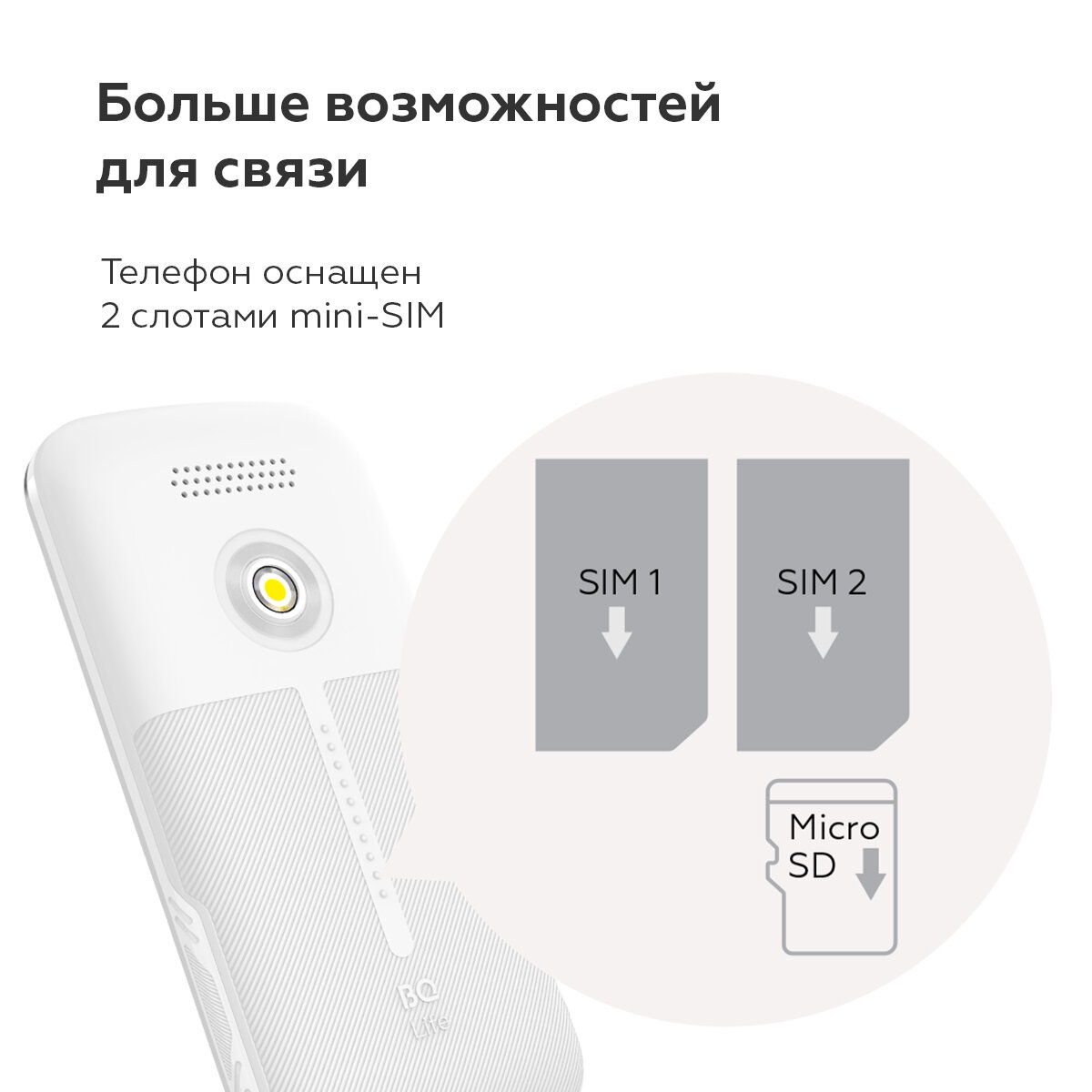 Кнопочный мобильный телефон с 2-мя СИМ-картами BQ 1853 Life White / Без камеры информация: