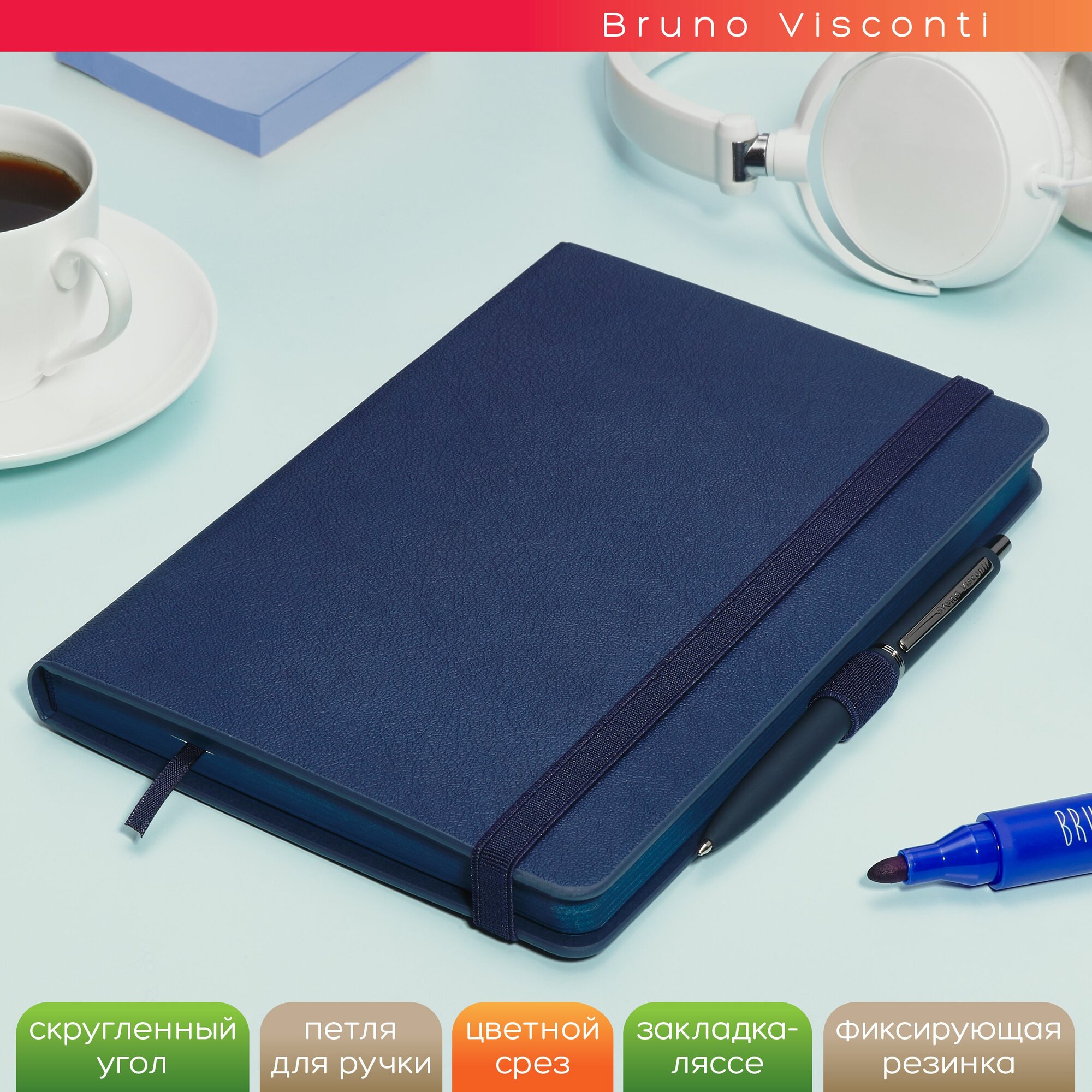 Ежедневник недатированный Bruno Visconti "MONACO" с цветным срезом, с резинкой, синий А5 арт.3-518/06 1 404 ₽