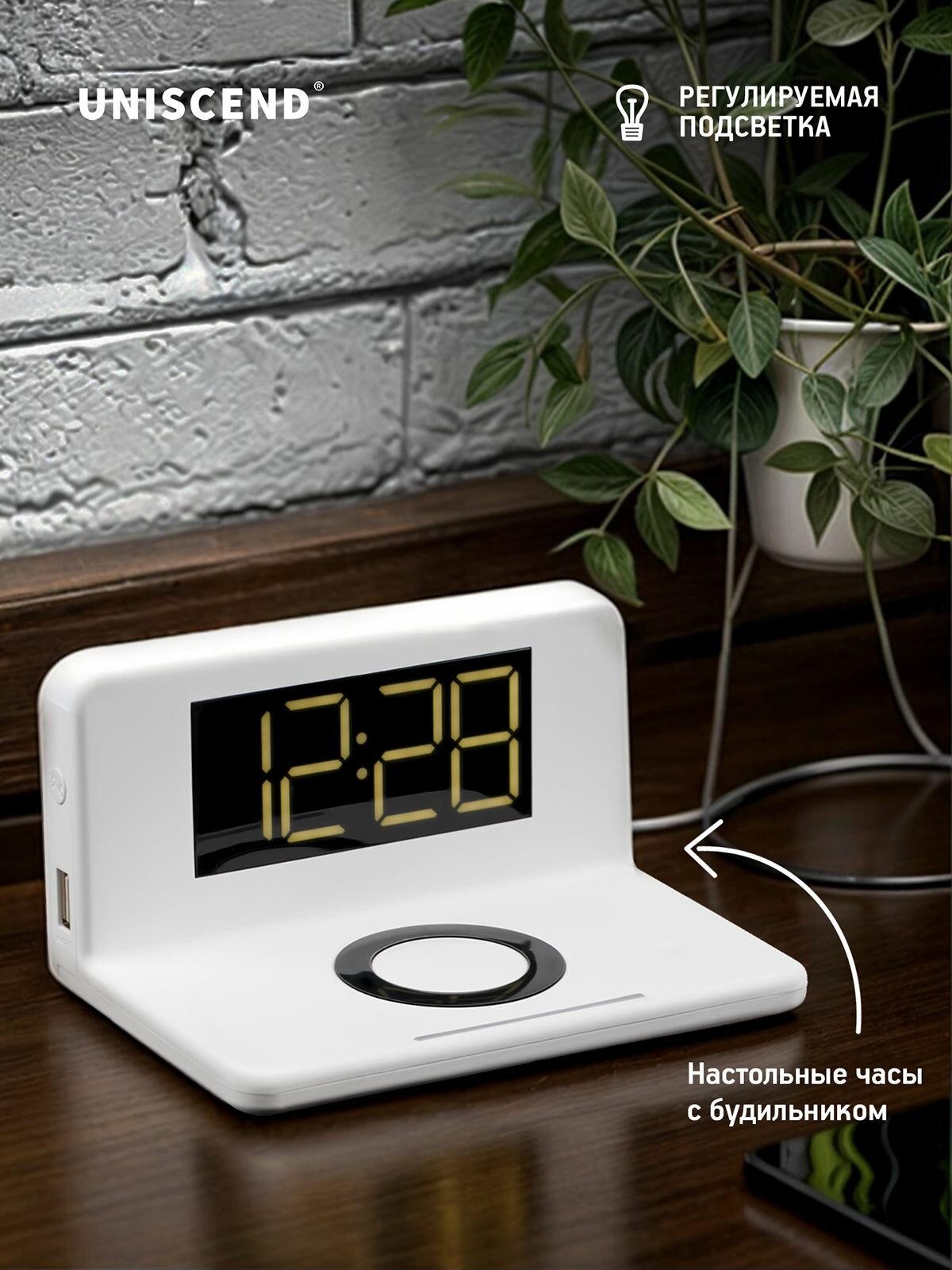 Отзывы на Часы настольные с беспроводным зарядным устройством зарядка для телефона Pitstop, белые подарок на 23 февраля 14 февраля мужчине парню папе