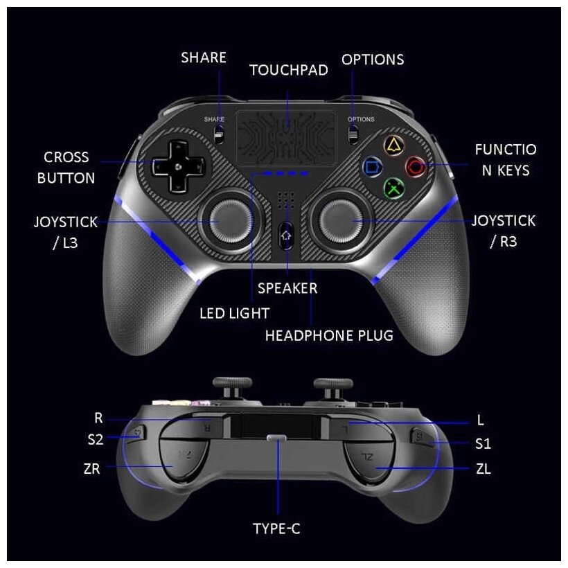 Беспроводной геймпад джойстик для игровой приставки, смартфона, ПК, темно-синий