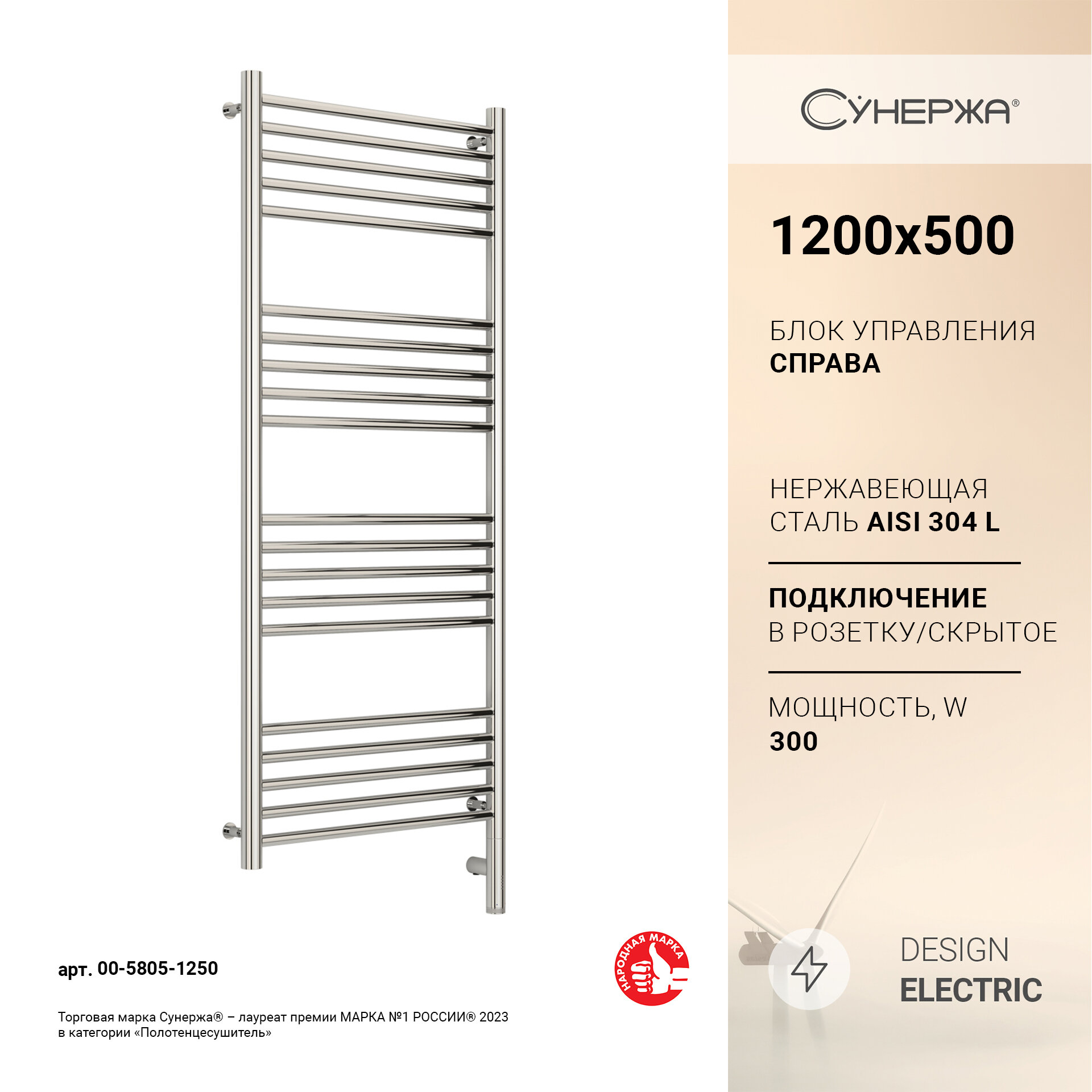 Полотенцесушитель электрический Сунержа Богема 3.0 прямая 1200х500 МЭМ правый Без покрытия 00-5805-1250 информация: