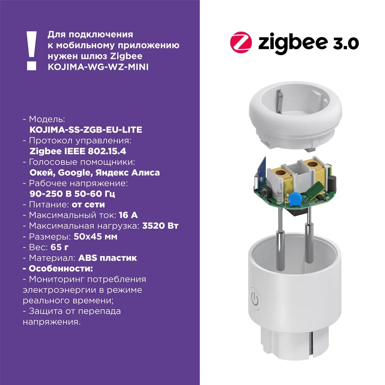 Умная розетка с ZigBee, мониторинг потребления, Яндекс Алисой, Google Home, Smart Power Plug 16A информация: