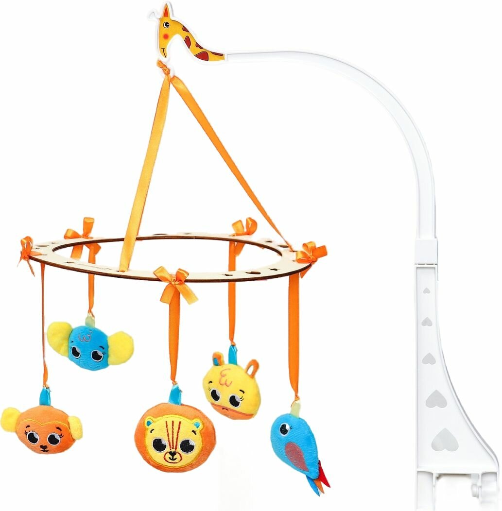 Мобиль на кроватку музыкальный для новорожденных и кронштейн из дерева-3
