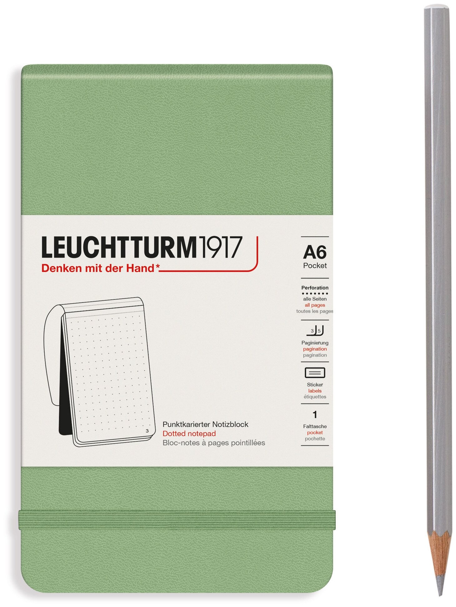 Блокнот Leuchtturm Reporter A6 94л в точку твердая обложка Зеленый Шалфей информация: