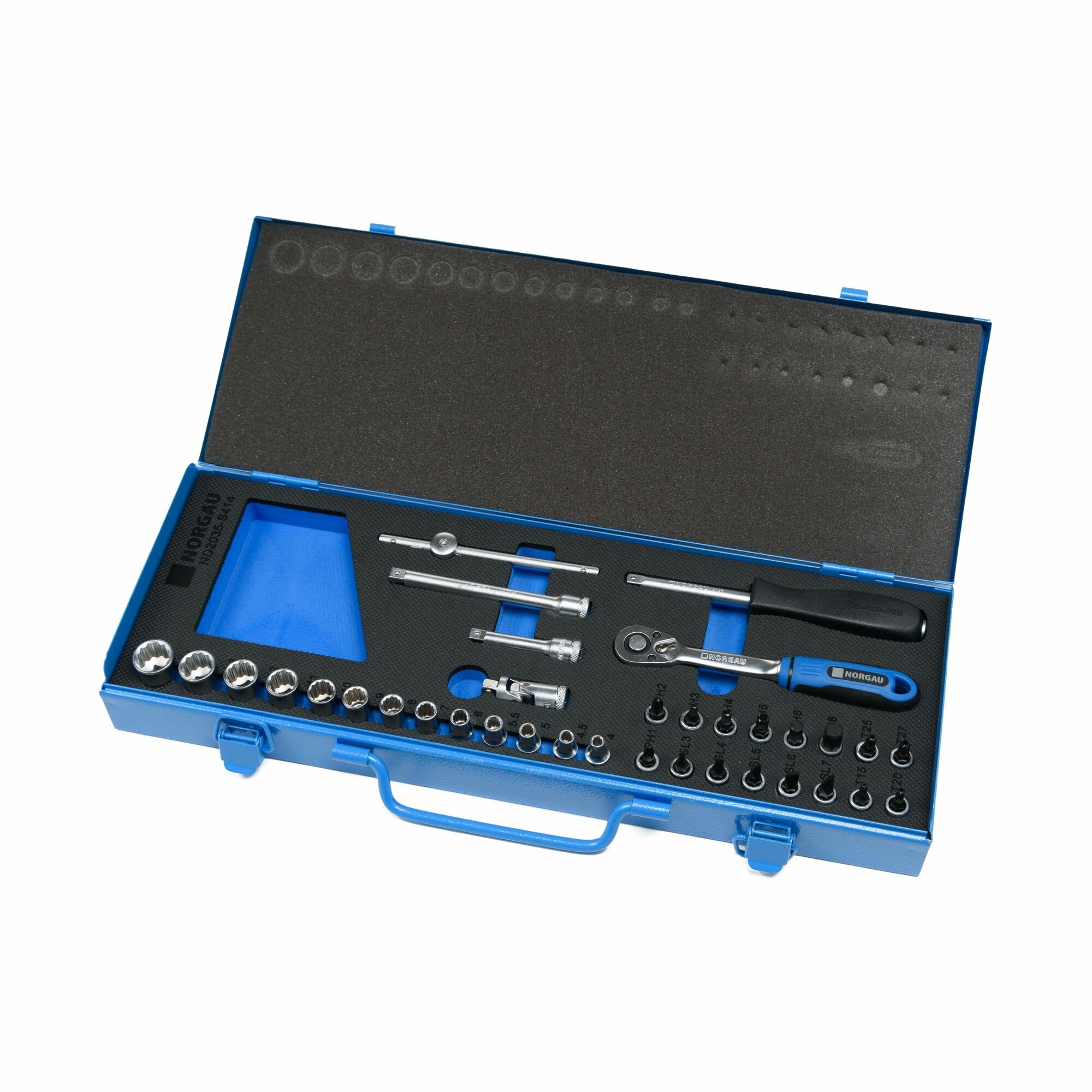 Набор головок c трещоткой NORGAU Industrial, торцевых, 12-гранных под квадрат 1/4" 35 предметов в чемодане информация: