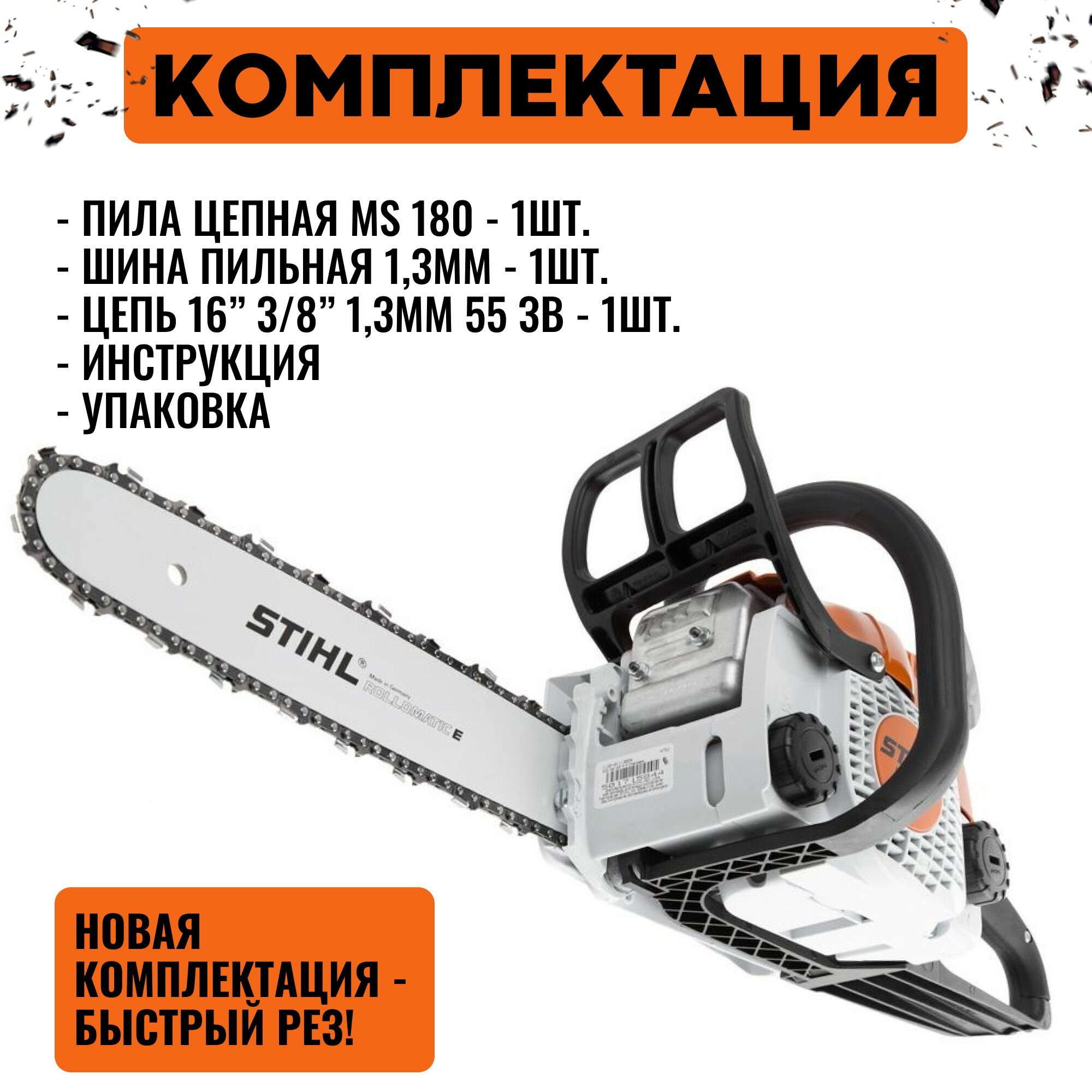 Бензопила STIHL MS 180 16" (1,5кВт/2лс, 40см., 55-3/8"-1,3 ) информация: