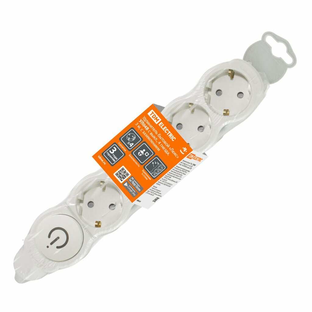 Отзывы на Удлинитель бытовой Люкс УЛ04В выкл, 4 гнезда, 3м, с/з, с з/ш, ПВС 3х1мм2 16А/250В бело-серый TDM, цена за 1 шт