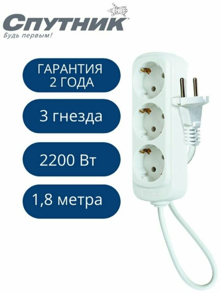 Сетевой удлинитель с заземлением Спутник ВК-303 1,8 м